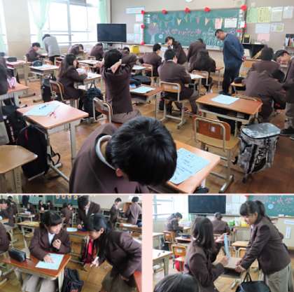 1限の学活の様子です。班の役割分担や自己紹介カードなどを作成していました。