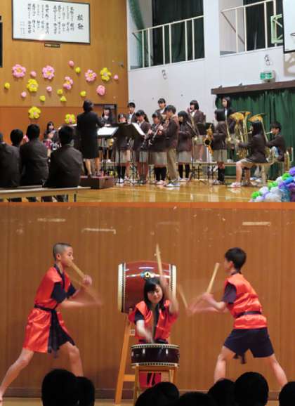 新入生を迎える会の様子です。(吹奏楽部と生徒会のオープニング)
