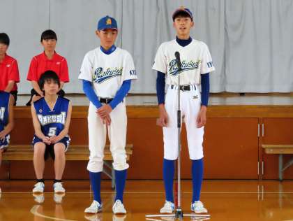 各部の決意表明の様子です。上から、全体の様子、野球部、サッカー部です。