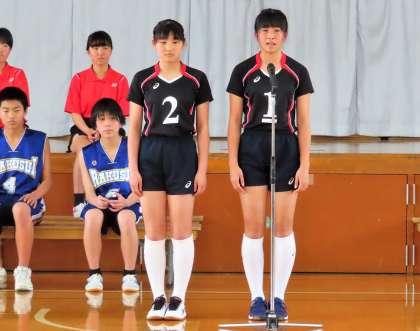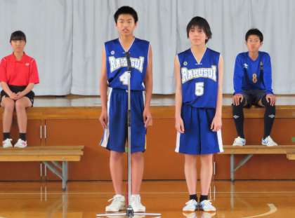 各部の決意表明の様子です。上が バスケットボール部、下が バレーボール部です。
