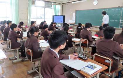 2限の授業の様子です。上から、2組 英語、3組 数学、4組 理科 です。