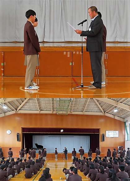 3年の代表クラスの各委員が校長先生から認証書を受け取りました。
