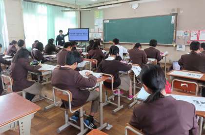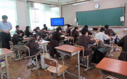 2限の授業の様子です。上から、2組 数学、3組 理科、4組 社会 です。
