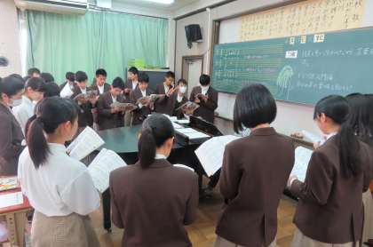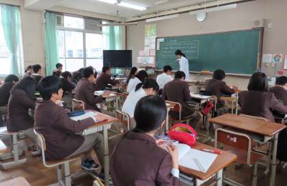 2限の授業の様子です。上から、2組 社会、3組 音楽、4組 理科 です。