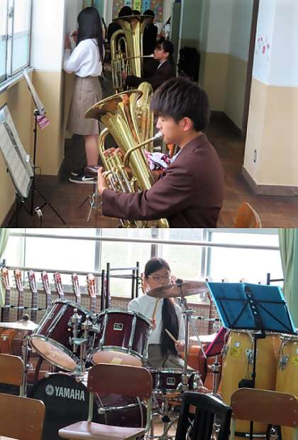 部活動の様子です。上から、野球部、吹奏楽部、卓球部です。