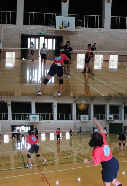 部活動の様子です。上から、卓球部、ソフトテニス部、バレーボール部です。