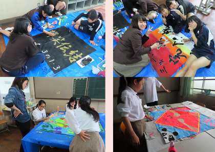 学級旗制作、最終日。完成間近です。