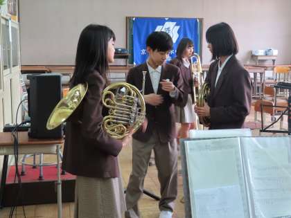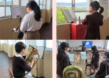 吹奏楽部の様子です。4月29日の吹奏楽伏見の集いに向けて頑張って練習をしています。