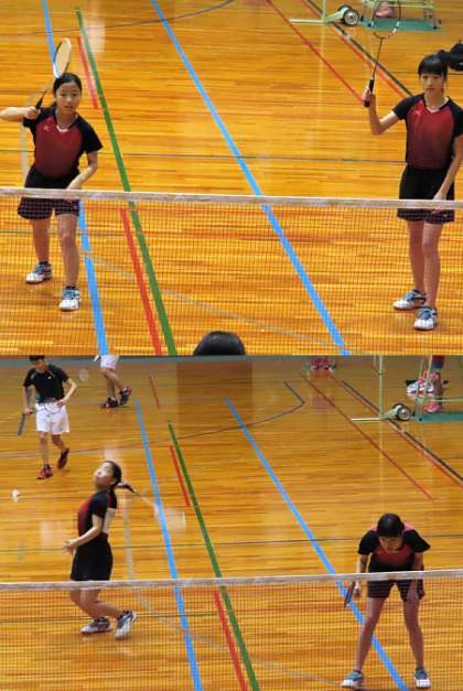 団体戦の様子です。第2ダブルスはフルセットにもつれ込む接戦となりましたが、最終セットをとられ、1−2で惜敗しました。