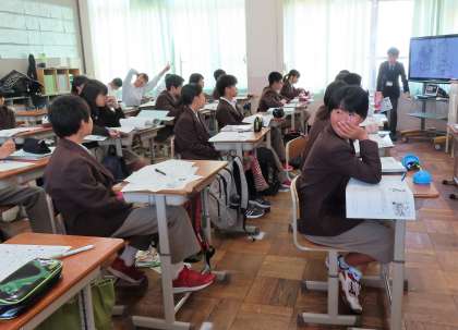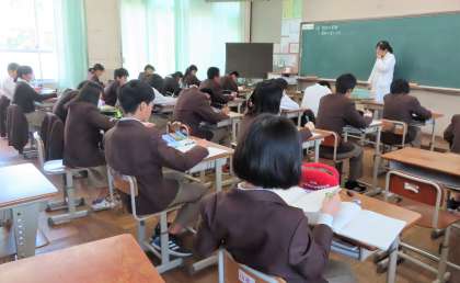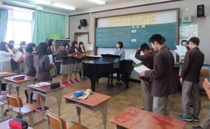 2限の授業の様子です。上から、2組 社会、3組 音楽、4組 理科 です。