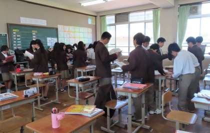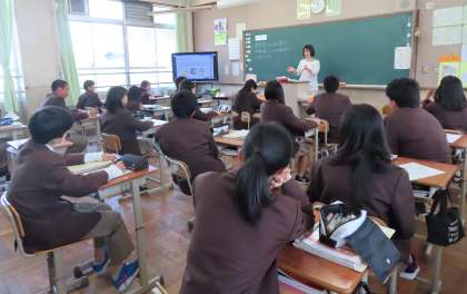 4限の授業の様子です。上から、2組 数学、3組 英語、4組 家庭 です。