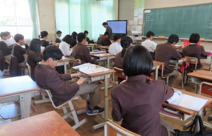 4限の授業の様子です。上から、2組 社会、3組 理科、4組 英語 です。