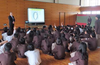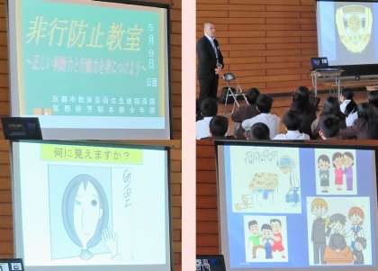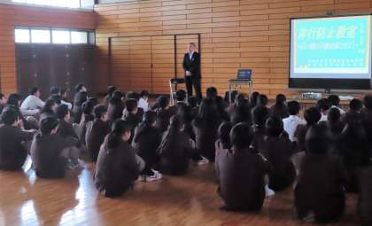 1年生は、本日の6限に格技室で、教育委員会から来ていただいた先生に講演をして頂き、非行防止教室を行いました。