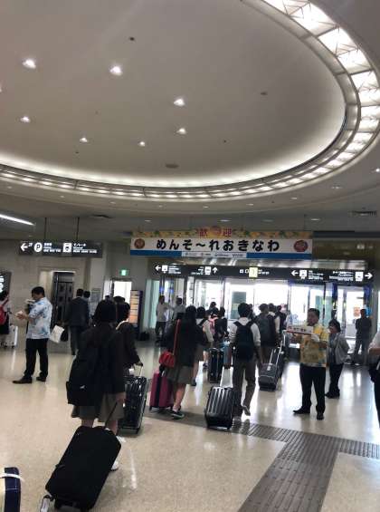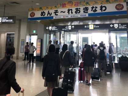 那覇空港に到着後、大きな荷物をもらいバスに乗車し、美ら海水族館へ向かいます。
