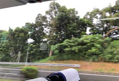 美ら海水族館に向けて移動中の様子です。外は雨のようです。