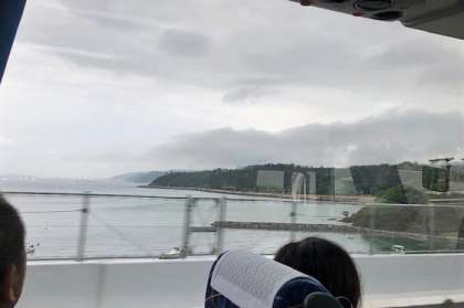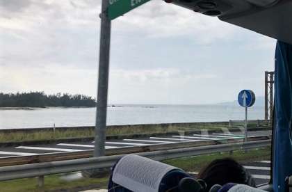 美ら海水族館に向けて移動中の様子です。海が見えてきました。