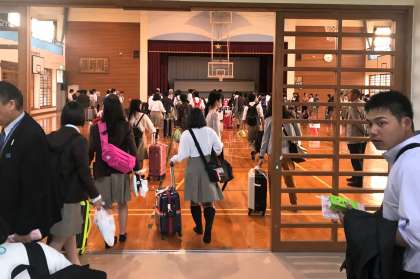 入村式が行われる大宜味村の農村環境改善センターに到着しました。