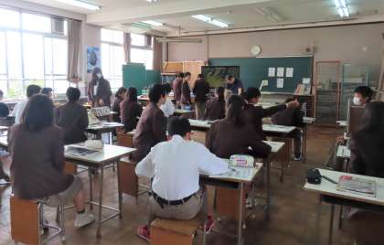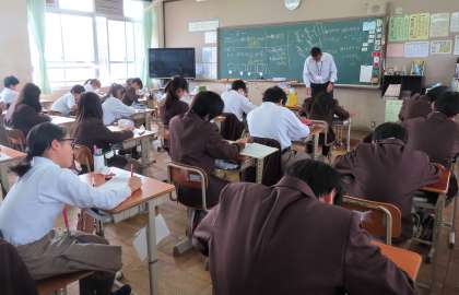 1限の授業の様子です。上から、2組 国語、3組 美術、4組 数学 です。