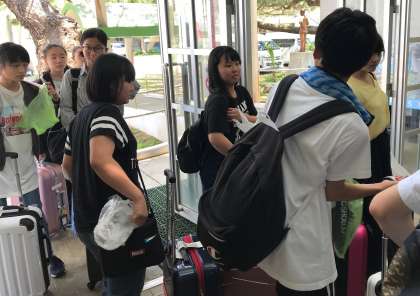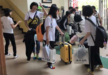離村式の行われる農村環境改善センターに、お世話になった民家の方々に送って頂き、子どもたちが集まってきました。
