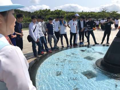 平和祈念資料館・平和の礎に到着し説明を受けています。