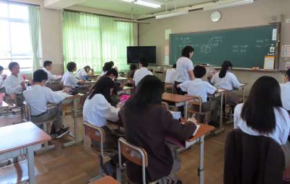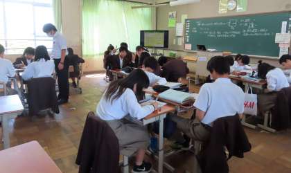1限の授業の様子です。上から、2組 理科、3組 英語、4組 社会 です。