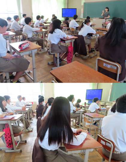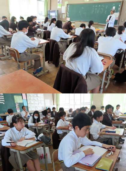 1限の授業の様子です。上から、2組 社会、3組 英語、4組 国語 です。