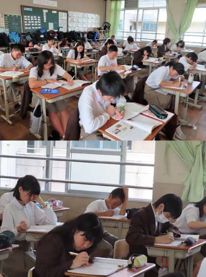 昨日よりテスト1週間前になり、本日も放課後学習会が行われました。2年生の様子です。