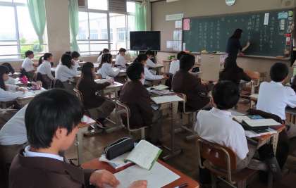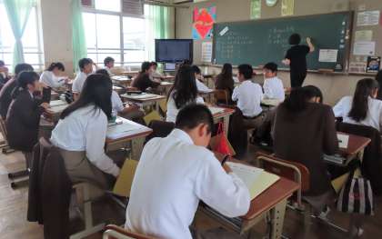 1限の授業の様子です。上から、2組 数学、3組 家庭、4組 国語 です。