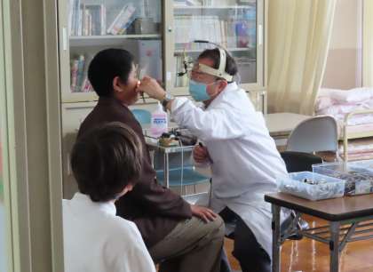 本日の午後、1組と2年、1年生では耳鼻科検診が行われました。耳鼻科検診での様子です。