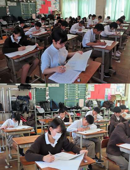 2限の3年生の国語のテストの様子です。