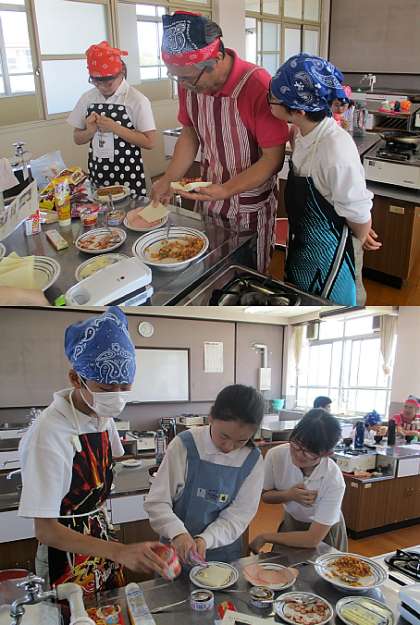1組は、調理実習を行いました。調理実習では、ホットサンドとオニオンスープを作りました。