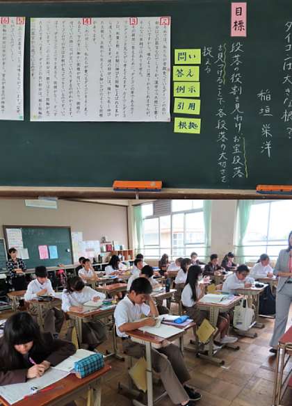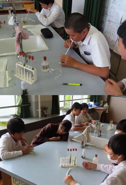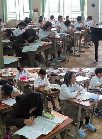 2限の授業の様子です。上から、2組 理科、3組 国語、4組 音楽 です。