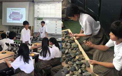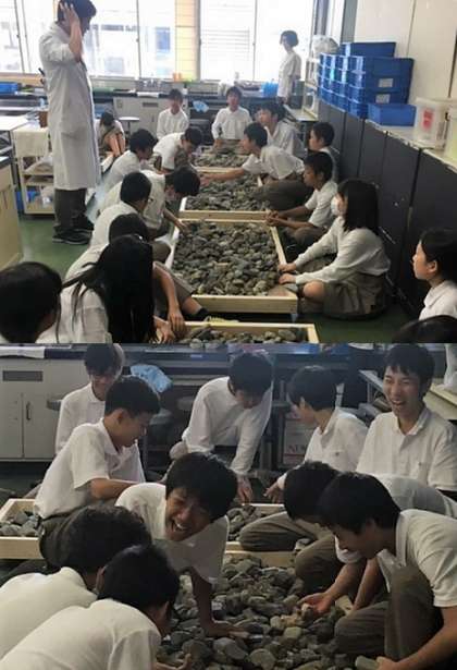 京都市内を流れる鴨川の川原にはたくさんの石が転がっています。その石をよく見ると、数種類の岩石に分けることができます。学習前半では、岩石を観察したり実験したりして、それぞれの特徴をつかみ、石の見分け方を身につけます。学習後半には、石の見分け方を活用して、鴨川にはどの石の割合が多いかを調べます。そして、その石が京都の鴨川にある理由や京都の土地の成り立ちについて考えを深めます。