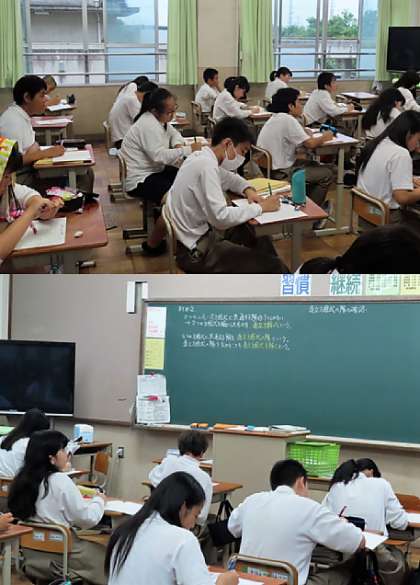 1限の授業の様子です。上から、2組 数学、3組 英語、4組 国語 です。