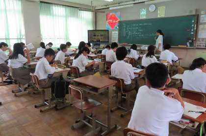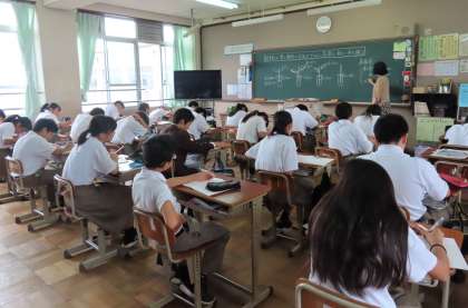1限の授業の様子です。上から、2組 社会(授業参観中)、3組 英語、4組 理科 です。