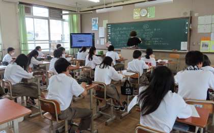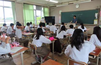 4限の授業の様子です。上から、2組 社会、3組 英語、4組 家庭 です。