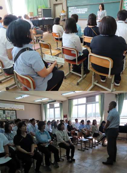 6限の授業参観後、全体会・分散会が行われました。全体会1では、今年度の研究主題や今回の研修のねらいなども含めて、洛水ブロックの小中連携の取組についての説明が行われました。また、分散会では授業参観後の研究協議が行われ、全体会2で、分散会での報告、講評等が行われました。