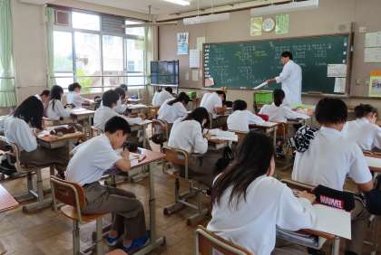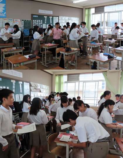 2限の授業の様子です。上から、2組 英語、3組 音楽、4組 数学 です。
