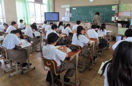 2限の授業の様子です。上から、2組 技術、3組 数学、4組 家庭 です。