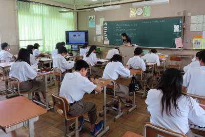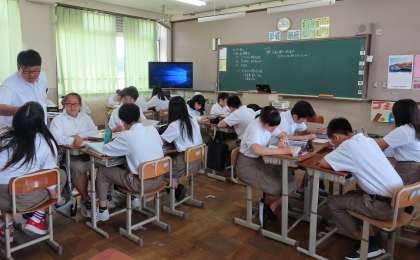 2限の授業の様子です。上から、2組 社会、3組 数学、4組 理科 です。