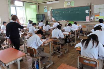2限の授業の様子です。上から、2組 美術、3組 英語、4組 数学 です。