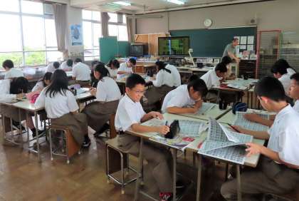 4限の授業の様子です。上から、2組 音楽、3組 国語、4組 美術 です。