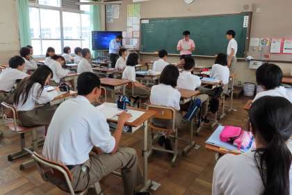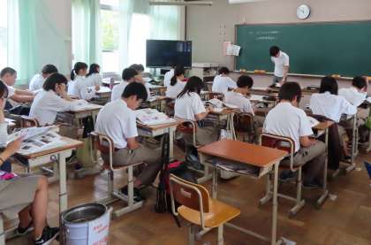 4限の授業の様子です。上から、2組 社会、3組 理科、4組 英語 です。