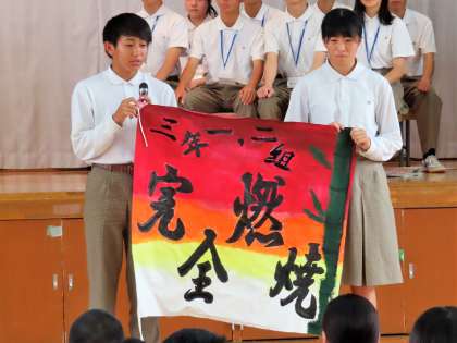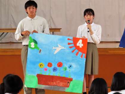 クラス紹介の様子です。2年4組、3年2組、3年3組の様子です。