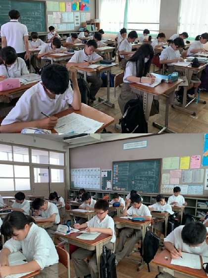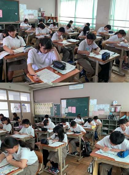 来週の26日の水曜日から始まるテストを前に本日、土曜学習会が行われました。参加した生徒は真剣に学習をしていました。1年生の様子です。