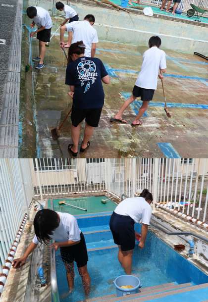 プール清掃の様子です。
