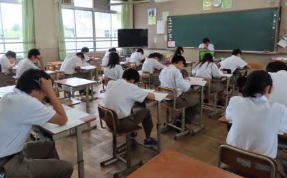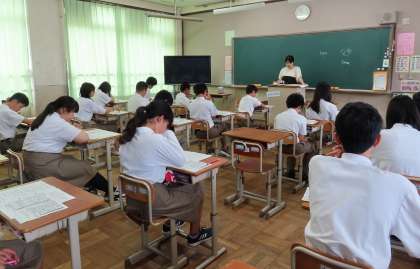 2限の授業の様子です。上から、2組 美術、3組 英語、4組 数学 です。