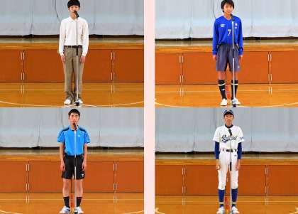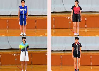 各部キャプテンからの夏季大会・コンクールに向けての決意表明の様子です。吹奏楽・サッカー・卓球・野球・バスケットボール・バドミントン・ソフトテニス・バレーボールの各部の順に行われました。