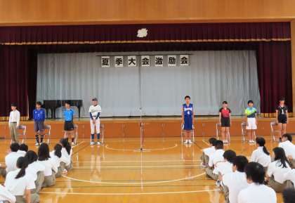 生徒会長、校長先生からの激励の言葉の様子です。