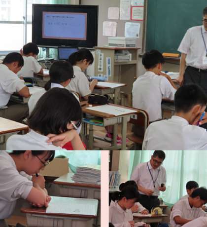 後半では、2組 国語・3組 理科・4組 数学の体験授業が行われました。